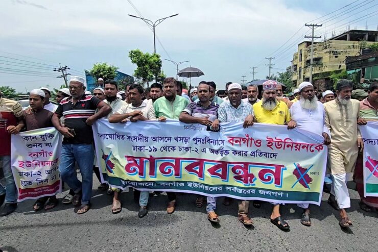 ঢাকা অর্থনীতি ডেস্ক: সম্প্রতী সংসদীয় আসন পুনর্বিন্যাসের খসড়া ঘোষণা করেছে বাংলাদেশ নির্বাচন কমিশন। সিদ্ধান্ত অনুযায়ী সাভার উপজেলাধীন বনঁগাও ইউনিয়নকে ঢাকা-১৯ আসনের পরিবর্তে সংযুক্ত করা হয়েছে ঢাকা-২ (কেরানীগঞ্জ) আসনে। এতে করে নাগরিক সেবা পেতে ভোগান্তিতে পড়ার সম্ভাবনা দেখছেন এলাকাবাসী। আসন পুনর্বিন্যাসের এই সিদ্ধান্তের প্রতিবাদ জানিয়ে মানববন্ধন ও বিক্ষোভ কর্মসুচি পালন করেছেন বনগাঁও ইউনিয়নবাসী।