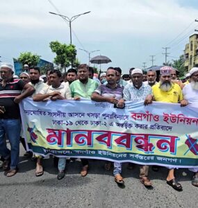 সংসদীয় আসন পরিবর্তনের সিদ্ধান্তের প্রতিবাদে সাভারে বনগাঁওবাসীর বিক্ষোভ
